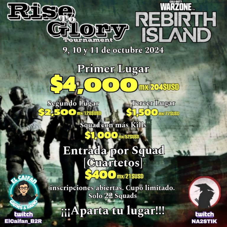 Ser miembros del Discord oficial de Rise to Glory Tournament.